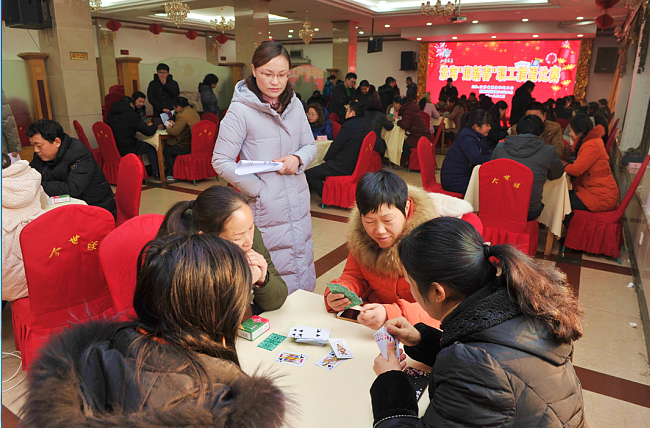 通過“迎新春”摜蛋比賽平臺(tái)的參與,有效增進(jìn)了職工之間的溝通與交流,營(yíng)造了良好的企業(yè)文化氛圍。圖為淮海公司代表隊(duì)在2018年“迎新春”摜蛋比賽現(xiàn)場(chǎng)的鏡頭。