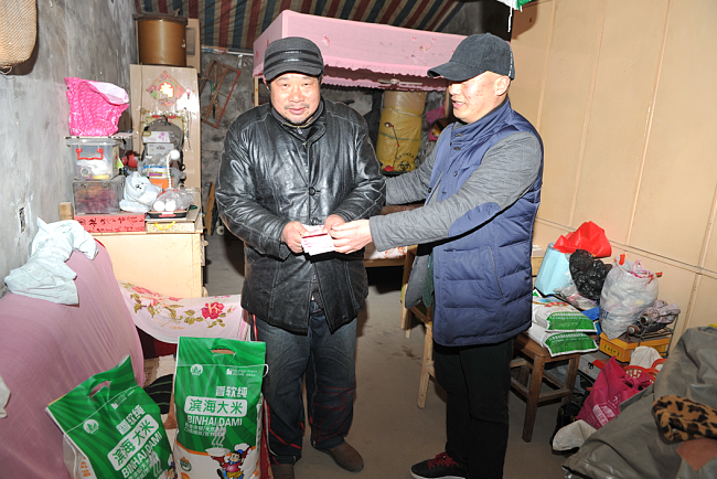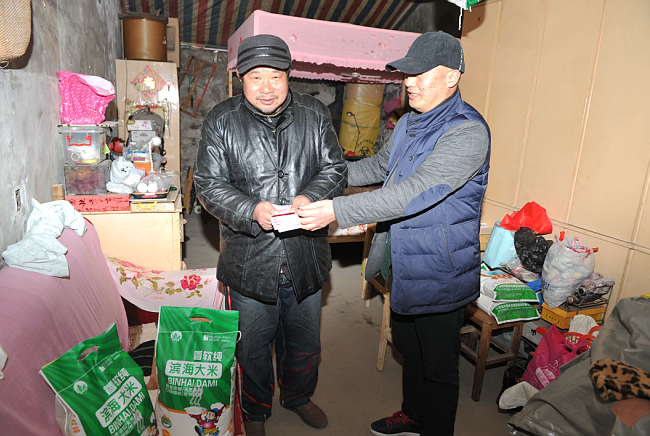 原來,同林是農場轉崗職工,通過自謀職業,從事個體經營業務。有著濃厚軍墾情結的他,在兩天前特地找到臧成龍,想通過他了解,并在年前資助兩戶貧困戶的想法。