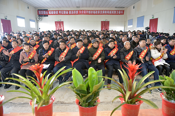 副場長王林宣讀了大會(huì)關(guān)于上述三個(gè)報(bào)告和兩份相關(guān)文件的決議,號(hào)召全場干群為實(shí)現(xiàn)2018年各項(xiàng)目標(biāo)任務(wù)而不懈努力。黨委副書記韓正光宣讀表彰決定,對(duì)2017年度成績突出的36個(gè)先進(jìn)單位、55個(gè)先進(jìn)個(gè)人或家庭進(jìn)行表彰并隆重頒獎(jiǎng)。四個(gè)單位的主要負(fù)責(zé)人和創(chuàng)業(yè)創(chuàng)新先進(jìn)個(gè)人代表溫仕貴分別作了交流或表態(tài)發(fā)言。