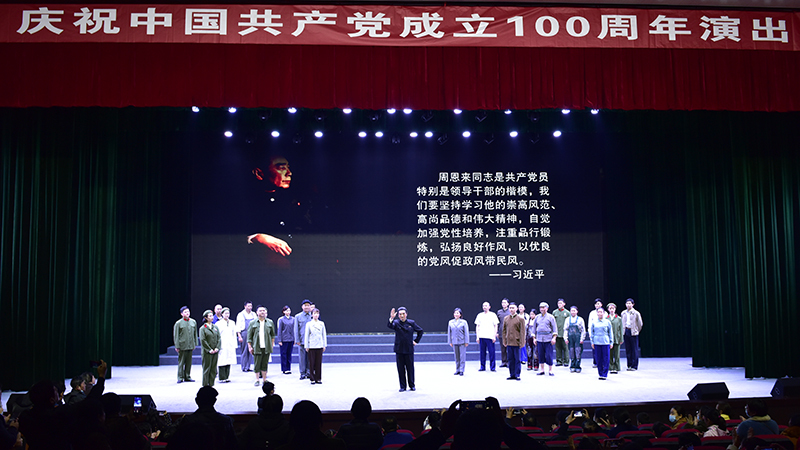 周恩來(lái),這是一個(gè)光榮的名字、不朽的名字。周恩來(lái)同志是近代以來(lái)中華民族的一顆璀璨巨星,是中國(guó)共產(chǎn)黨人的一面不朽旗幟。作為淮安市委慶祝中國(guó)共產(chǎn)黨成立100周年獻(xiàn)禮作品之一,該劇以習(xí)近平總書(shū)記提出的不忘初心、堅(jiān)守信仰,對(duì)黨忠誠(chéng)、維護(hù)大局,熱愛(ài)人民、勤政為民,自我革命、永遠(yuǎn)奮斗,勇于擔(dān)當(dāng)、鞠躬盡瘁,嚴(yán)于律己、清正廉潔這六個(gè)杰出楷模為主線,擷取了黃河搶險(xiǎn)、送侄回鄉(xiāng)、故鄉(xiāng)行、一件珍貴的襯衫、顧全大局、西花廳不滅的燈光、最后的歲月等七個(gè)篇章,以藝術(shù)的手法還原或再現(xiàn)了周恩來(lái)作為中國(guó)共產(chǎn)黨人杰出楷模,在為中國(guó)人民謀幸福、為中華民族謀復(fù)興、為人類進(jìn)步事業(yè)而奮斗的光輝一生中的一些典型情景,再現(xiàn)和展示了周恩來(lái)這一偉岸的精神豐碑,塑造和彰顯了一名優(yōu)秀中國(guó)共產(chǎn)黨人的光輝形象,使大家深受感染并深愛(ài)感動(dòng)。紛紛表示要深入學(xué)習(xí)周恩來(lái)對(duì)理想信念堅(jiān)定執(zhí)著、對(duì)黨的事業(yè)忠貞不渝、對(duì)革命工作高度負(fù)責(zé)、對(duì)人民群眾情懷至深、對(duì)自我修養(yǎng)嚴(yán)格要求的精神風(fēng)范,始終做到不忘初心、堅(jiān)守信仰,牢記手中的權(quán)力是黨和人民賦予的,是用來(lái)為人民服務(wù)的,一身正氣、兩袖清風(fēng),敬畏人民、敬畏組織、敬畏法紀(jì),更好地加強(qiáng)自身建設(shè),做一個(gè)堂堂正正的共產(chǎn)黨人,用實(shí)際行動(dòng)在新時(shí)代新征程上作出各自應(yīng)有的貢獻(xiàn)。