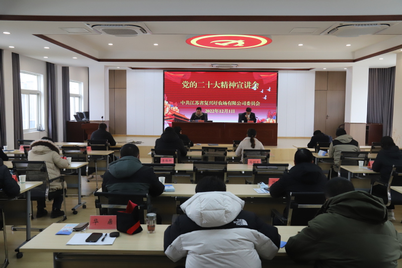 為深入學習宣傳貫徹黨的二十大精神,12月1日上午,復興圩農場有限公司組織召開黨的二十大精神宣講會,邀請了黨的二十大代表、淮安市盱眙縣桂五鎮養老黨支部書記、敬老院院長李銀江到場傳達宣講黨的二十大精神。農場公司黨委領導班子成員、全體在職黨員、管理人員參加了宣講會。