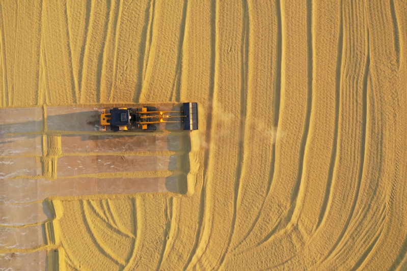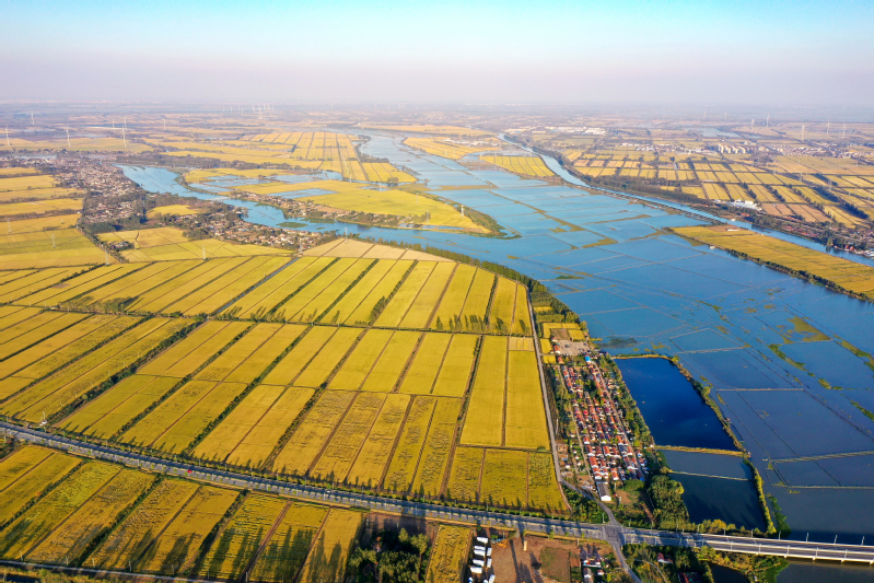 金秋十月,豐收季節。高空俯瞰寶應湖農場,田間地頭,收割機來回穿梭,曬糧場,稻谷飄香,處處呈現如畫般的豐收美景。水稻收割完之后,旋耕機、播種機隨即“登場”,將一粒粒麥種播撒進田間,為來年豐收打下基礎。