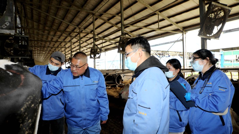 東旺奶牛公司生態養殖示范場存欄奶牛4800余頭,日常的奶牛管護、產后護理、轉群分群及病牛治療等工作任務十分繁重,獸醫組嚴格遵循“日巡查+周例會+月巡診”的工作機制,通過巡棚查看、巡診交流,全面了解掌握牛只的健康與成長狀況,做到有檢查、有治療、有回診,保障疫病防控和奶產品安全供給?!懊總€月,周主管都會定期帶我們進行巡診,現場診斷指導,我們的業務水平有了明顯提升,工作起來也更得心應手了?!鲍F醫組工作人員楊華說。東旺奶牛公司始終堅持人才強企理念,通過師帶徒、老帶新和技術培訓、技術交流等形式,不斷提升獸醫人員專業技能水平,奶牛乳房炎、腸炎、蹄病等疾病發生率有效降低,在牧場提單產、降成本、增成效方面發揮出積極作用,助力東辛畜牧業高質量發展。