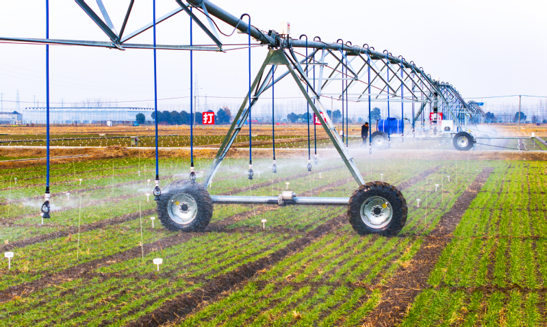近日,白馬湖農場工人搶抓農時,根據(jù)冬小麥生長苗情、土壤墑情情況,利用平行行走式水肥藥一體機進行均勻灌溉,加強小麥分蘗期水分和壯蘗肥供給,讓小麥吃上“營養(yǎng)餐”,為夏糧豐收奠定基礎。