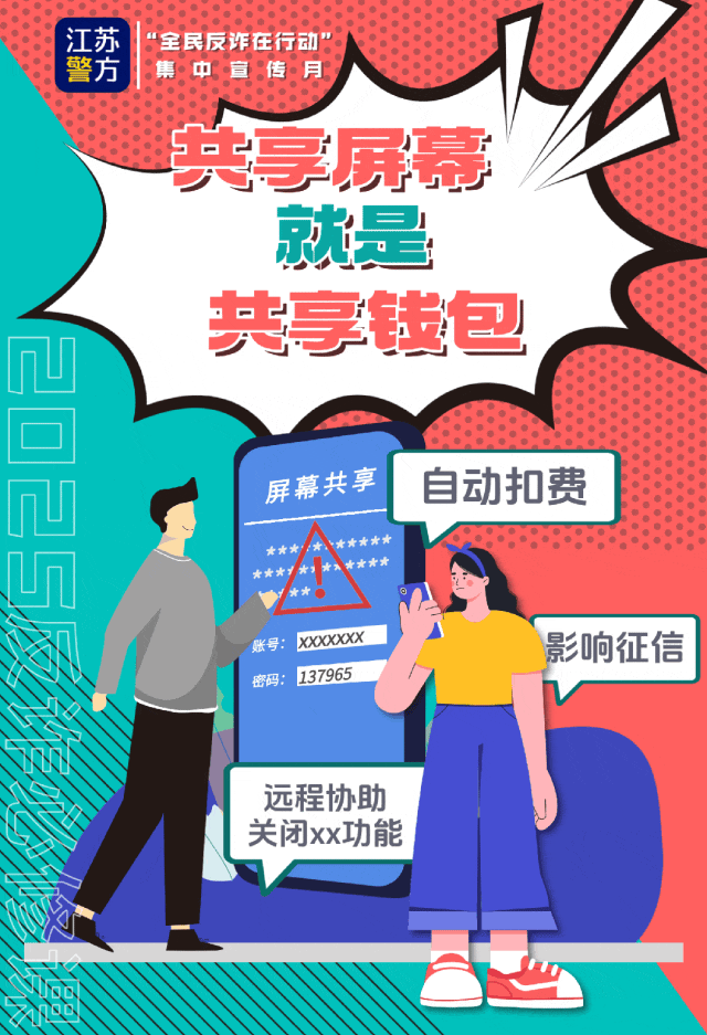 劃重點(diǎn):騙子以自動(dòng)扣費(fèi)、影響征信等為由,聲稱需要關(guān)閉某項(xiàng)服務(wù),并可以通過共享屏幕來“手把手”教學(xué)。但事實(shí)上,一旦共享屏幕,就等于共享了所有信息,你的驗(yàn)證碼、密碼都將在對(duì)方的屏幕上一覽無遺。