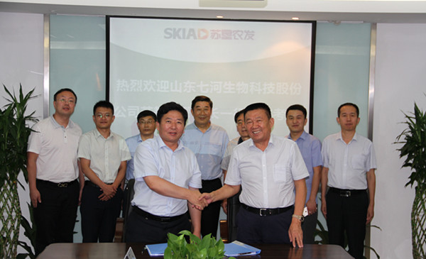 8月16日,山東七河生物科技股份有限公司董事長蘇耜同一行到訪蘇墾農發股份公司總部,集團公司總經理、蘇墾農發股份公司董事長胡兆輝,集團公司黨委委員、蘇墾農發股份公司總裁蘇志富與蘇耜同董事長舉行了會談
