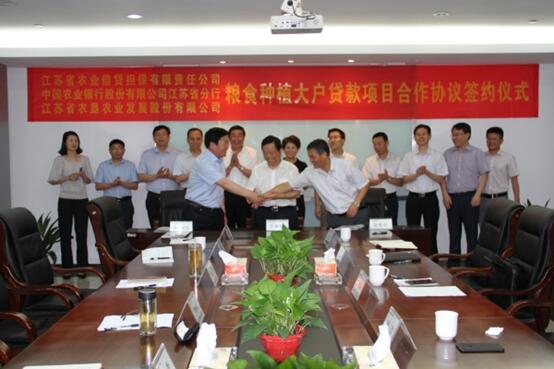 6月21日下午,蘇墾農(nóng)發(fā)、省農(nóng)行、省農(nóng)擔(dān)公司在寧舉行全省糧食種植業(yè)大戶(hù)貸款項(xiàng)目合作簽約儀式。集團(tuán)公司總經(jīng)理、蘇墾農(nóng)發(fā)董事長(zhǎng)胡兆輝,省農(nóng)行黨委副書(shū)記、副行長(zhǎng)周吉,省農(nóng)擔(dān)公司副總經(jīng)理朱旭東出席并講話,
