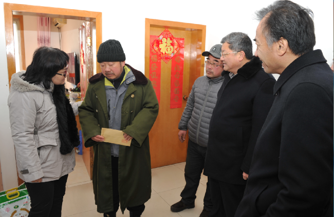 2月6日上午,集團(tuán)公司黨委副書記姚準(zhǔn)明一行來到新曹農(nóng)場走訪慰問困難職工,為他們送去集團(tuán)黨委的真情關(guān)愛。場領(lǐng)導(dǎo)陳國強(qiáng)、高國平、徐坤山等陪同慰問?! ∫?zhǔn)明首先來到因病致困職工夏澤銀家中,