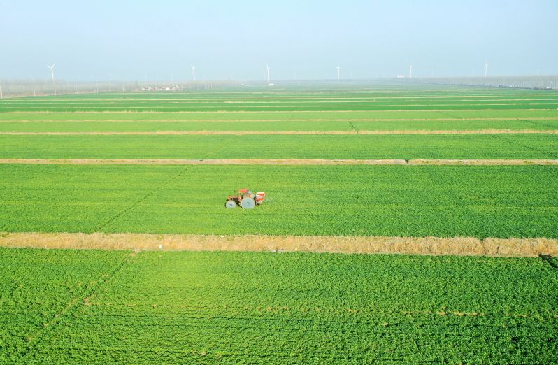 3月13日,江蘇省鹽城市射陽縣,在江蘇農墾新洋農場的一處高標準農田里,農技人員正在操縱一臺新式植保無人機,為小麥開展春季施肥作業。當前,新洋農場6萬畝高標準農業生產基地進入春管關鍵階段,該農場搶抓農時,積極開展春季田管作業,助力夏糧穩產增收。