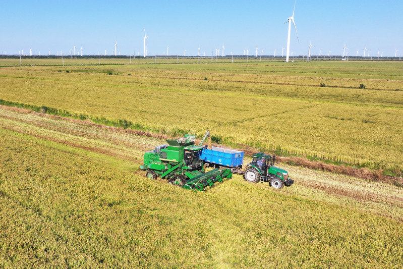 隨著豐收季節到來,蘇墾農發新洋分公司近6萬畝的水稻陸續成熟,田園“豐”景宛如畫卷。