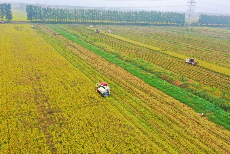 面對陰雨頻繁、氣溫波動的考驗,崗埠農場迅速應對,以應收盡收、應種盡種為原則,全面打響搶收搶種“閃擊戰”,建立起“氣象預警—機械調配—技術指導”全鏈條響應機制,結合作物成熟度制定搶收計劃,科學調配農機并做好維修保障,確保秋糧顆粒歸倉,冬小麥播種及時落地。