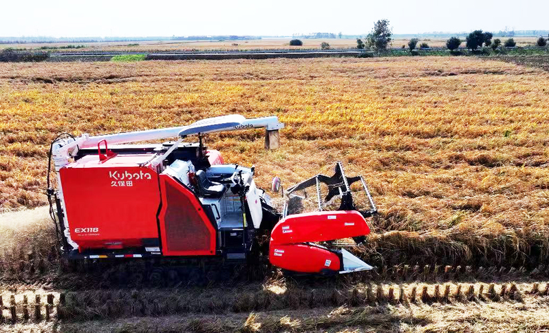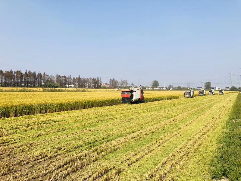 10月9日,臨海農場的稻田里機聲轟鳴,1000畝早熟水稻品種“武育粳702”首塊田正式開鐮收割。