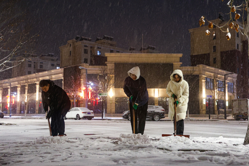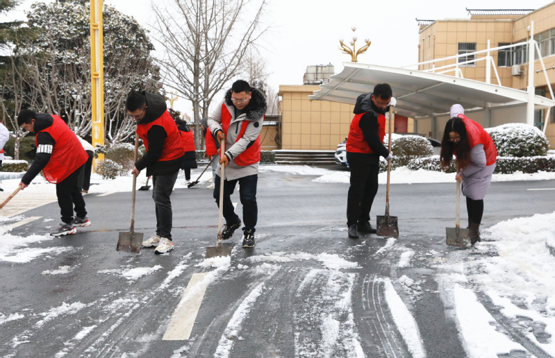 2月4日,連云港再降大雪,云臺農場部分地區積雪嚴重。云臺農場公司黨委迅速反應、精準發力,立即啟動暴雪天氣應急預案,積極組織華泰物業公司,農場社區城管隊、各居委會網格員等形成志愿小組,即刻開展“清除道路積雪 保障通行安全”行動,各單位、部門迎雪而上,全力以赴保障場域居民群眾出行安全。在清雪過程中,采取“人工+機械”方式進行清除,有的在場域內主次干道,使用鏟雪車、撒鹽車,有序配合;有的拿著鐵鍬、掃帚等清雪工具,手動鏟雪,并用盆潑灑融雪劑,清理雪泥積水,清運的隊伍浩浩蕩蕩。冰冷的雪花飄下,刺骨的寒風吹在志愿者的臉上、手上,可志愿者們不顧嚴寒,個個干的熱火朝天,掀起了一波清雪“大作戰”。“小心地滑,大家一定要注意自身安全。”“斜坡除雪一定要注意,關注一下往來的車輛。”志愿者崔婷婷喊道。“我們只想盡快保障通暢出行,確保居民們的安全。”志愿者滕偉喘著粗氣告訴筆者。志愿者們克服惡劣天氣等不利因素帶來的影響,對場域內公共區域進行連續作業,最大限度保障居民安全出行,不畏嚴寒、不怕辛苦,以昂揚的精神面貌繼續奮戰在除雪保暢一行。