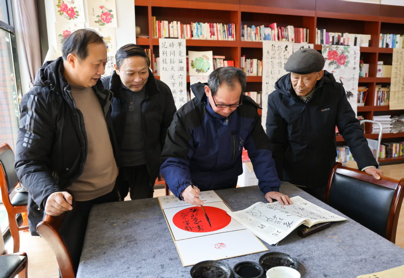 春節臨近,為弘揚中華優秀傳統文化,傳遞新洋溫度,營造文明和諧、歡樂喜慶的節日氛圍,1月23日起,新洋農場居家養老新時代文明實踐站持續開展“筆墨凝書香 新年送祝福”活動,以書寫祝福對聯、制作書畫掛歷的方式迎接甲辰龍年。活動現場,居家養老新時代文明實踐站文化惠民志愿者服務隊的4位本土書畫家們聚精會神地在空白掛歷或紅紙上揮毫潑墨,或魏碑或行草,或寫意或工筆。不一會兒,“龍騰霄漢開好運,鵲立枝頭報好音”“龍騰瑞氣,鳳舞春風”等蘊含吉祥祝福的春聯躍然紙上,一幅幅風格迥異、格調高雅的書畫掛歷也制作完成了。書畫大師們將寫好的春聯小心地攤在地上,又為書畫掛歷穿上流蘇裝飾品并掛起晾干,一瞬間書畫室里翰墨飄香。一行行俊秀蒼勁的書法,一張張各不相同的“福”字,一幅幅惟妙惟肖的蠟梅報春國畫圖,一句句喜慶美好的祝福,既烘托了喜慶歡樂的氣氛,又表達了美好的祝愿和期盼,引得前來實踐站活動的群眾紛紛駐足欣賞,贊嘆不已。“春聯還是手寫的好,印刷的總感覺少了點年味,我每年都要來這里挑選幾副,沒想到今年還有書法繪畫掛歷,看著就叫人歡喜,朱老師,您記得給我留一幅啊。”城南居委會居民許秀麗一邊喜笑顏開地挑選自己喜愛的對聯,一邊