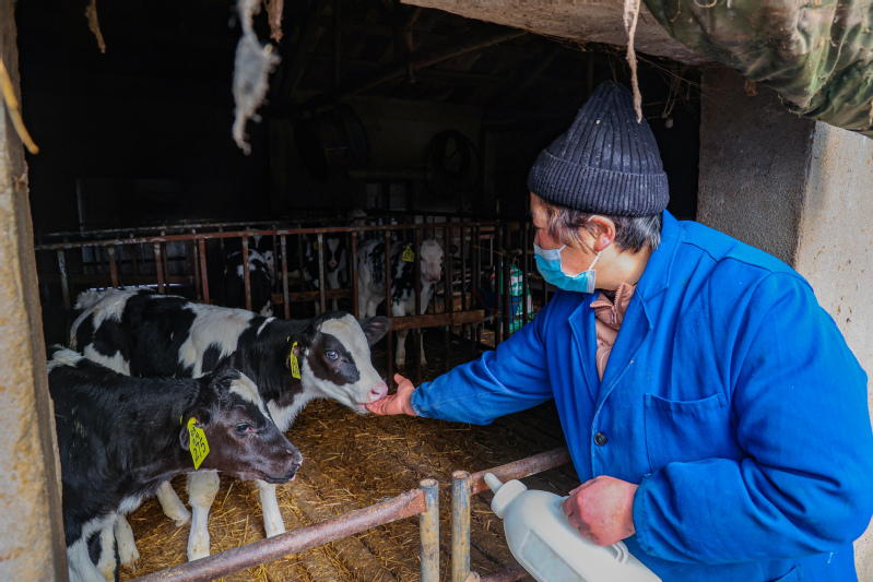 1月21日,走進連云港東辛農場犇益奶牛場,便聽見渾厚的“哞哞”聲,牛舍里養殖戶正在喂養奶牛,一頭頭奶牛正悠閑地吃著草料,每頭牛的耳朵上都帶著寫上數字的編號。
