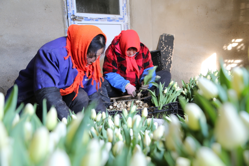 日前,崗埠農場公司的20萬株顏色各異的郁金香陸續成熟,進入采摘期。在富民農業科技園的32號溫室大棚里,工人們正加班加點挑選采收、包裝成熟的郁金香。據了解,園區每天采收郁金香超3000株,受到市場歡迎,預計春節前將全部銷售結束,進一步豐富廣大群眾的“花瓶子”。