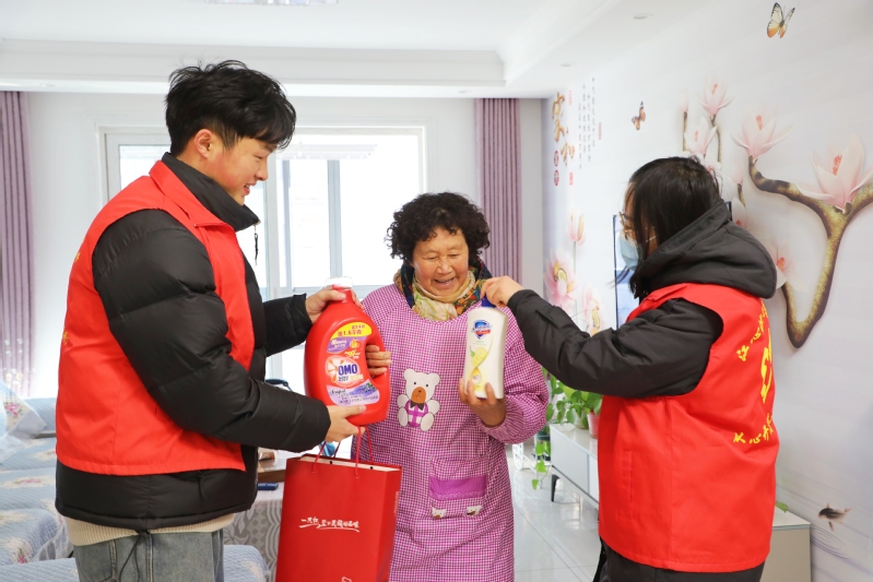 近日,江心沙農場開展積分制“商品”集中兌換活動,職工居民憑借年度積分領取洗衣液、洗潔精、肥皂等日用品,圖為社區工作人員上門為腿腳不便的老人兌換積分。近年來,江心沙農場以推行“積分制”為契機,以黨建引領“四治融合”為抓手,引導職工居民積極參與社區治理,在大事小情中掙取積分“數字幣”,爭當“文明儲戶”,兌取文明新風尚。