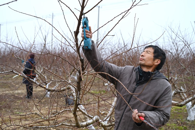 1月2日,淮海農場公司資源管理中心邀請外地的4名果樹修剪領域的專家,來到上百畝的果園基地內開展果樹的冬剪,并對中心的部分員工進行實地修剪操作培訓工作,確保通過果樹的冬剪培養人才,同時也為明年果樹多掛果、掛好果打下堅實基礎。圖為修剪師傅在冬剪。