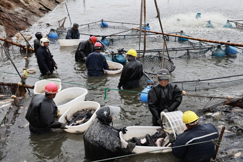 春節將至,東辛水產公司集體養殖場開展冬捕保市場供應,采用“訂單+市場銷售”模式,日銷鮰魚達16萬斤,呈現出一幅魚躍人歡的生動圖場景。