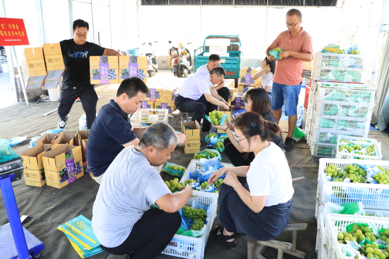 正值海農葡萄大量成熟上市季節,葡萄銷售火爆,為搶抓成熟季、緩解用工壓力,海安農場公司組織機關干部開展以“包你滿意”為主題的葡萄盒裝勞動競賽活動。大家兩人一組,有條不紊的分揀、包裝、稱重,小心翼翼地將熟果放入紙箱、貼好標簽。經過半天勞動,200多箱葡萄“整裝待發”。此次活動,有效激發了各部門職工工作的積極性和主動性,營造了勞動光榮的良好氛圍,為海安農場公司高效農業的發展注入了新能量。